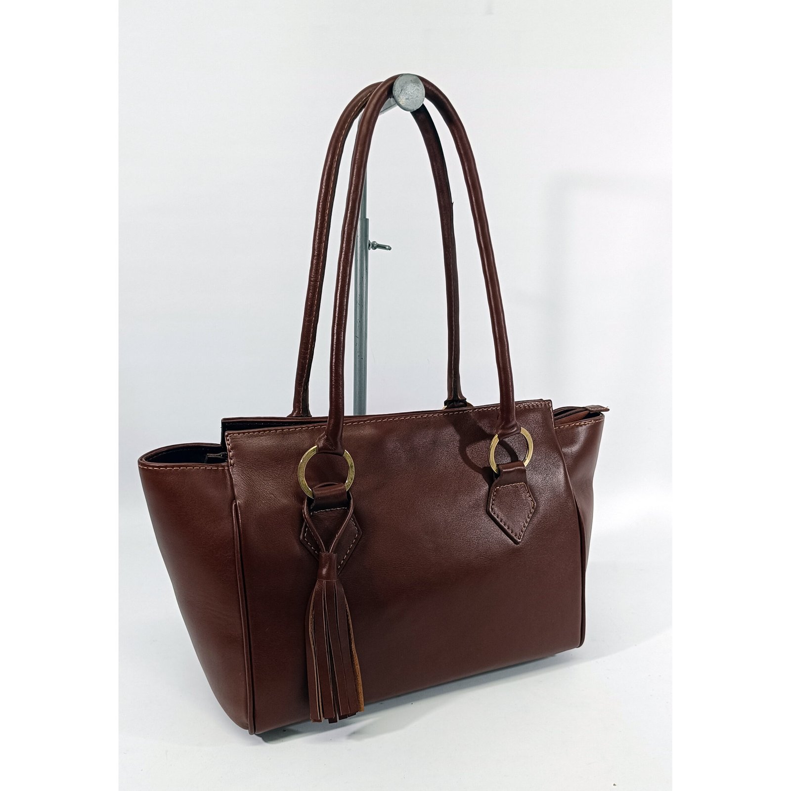 Borla Artesanal: Incluye un detalle decorativo de borla de cuero (tassel) que le otorga un aire chic y dinámico al frente de la cartera.